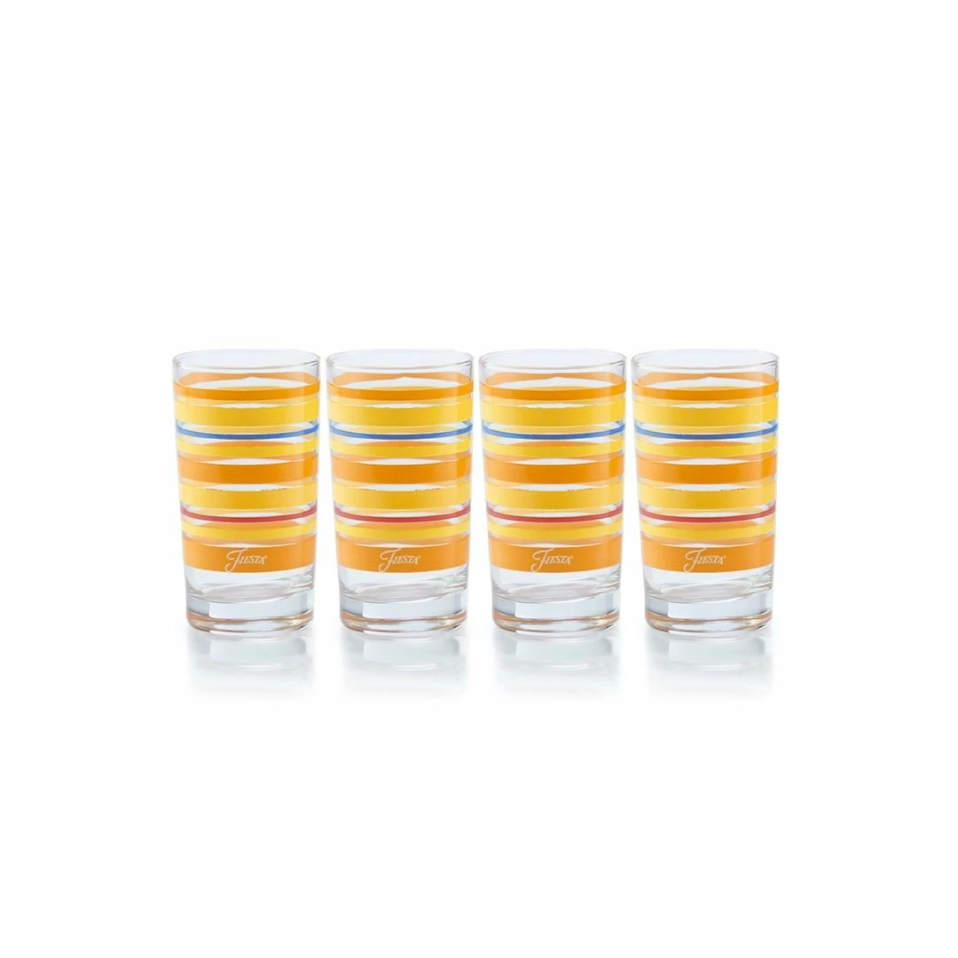 For Thirsty Thursdays, home celebrations, and summertime festivities, you’ll want this exclusive Fiesta® Sienna Sunset Drinkware Set! From cocktails and old-fashioneds to iced tea and fruit smoothies, quench your thirst with each set of glasses whether indoors or enjoying your backyard during a grill-out on the deck. Featuring stripes in Scarlet, Sunflower, Lapis, and Daffodil on each glass, you are bound to encourage light and life to the table and your company. Blow your next gathering out of the water with this Sienna Sunset Drinkware Set and pair your glasses with vibrant and colorful dinnerware. Leave it to Fiesta® to make your favorite drinkware!