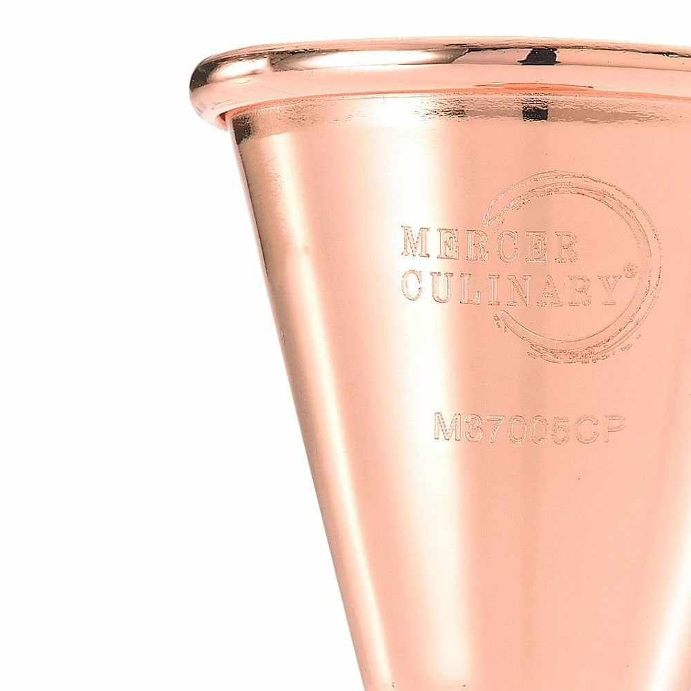 Make the perfect cocktail with this Barfly Copper Plated Jigger! This stainless steel double jigger measures 2oz on one side and 1oz on the other—perfect for creating a classic margarita consisting of 2oz silver tequila, 1oz Cointreau, and 1oz fresh-squeezed lime juice. Inside there are internal measurement lines for even more options. Made of 18/8 stainless steel and featuring a rolled top edge for strength, this Japanese style jigger will serve your guests a fantastic cocktail every time. And thanks to its industrial-style feel and shiny copper finish, you’ll love displaying it!