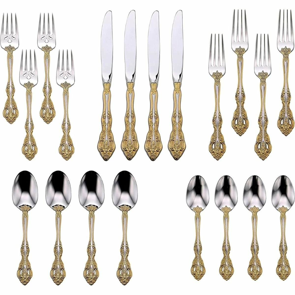 Oneida 18/10 Stainless Steel 20-Piece Flatware Set (Golden Michelangelo) Features: