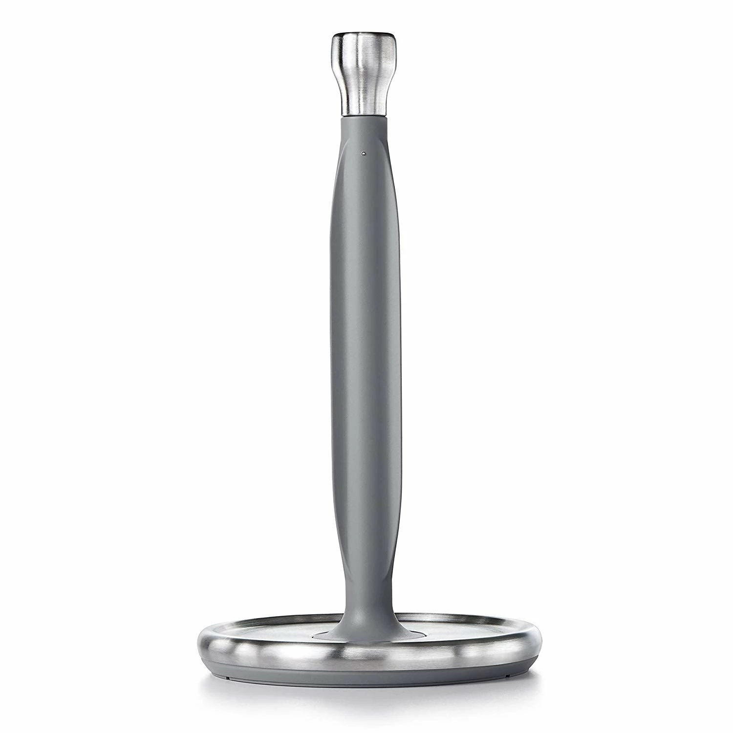Keep your paper towels ready to take on accidental spills and messes with the stylish OXO Steady Paper Towel Holder! This stainless steel paper towel holder can fit both small and jumbo-sized rolls and is designed with extra-smooth rotation for easy one-handed tearing. With a weighted base that won’t slip while in use, this paper towel holder has a convenient die-cast knob at the top to keep your paper towel roll in place. Plus, you can use the nifty knob for easy transport. For a sleek paper towel holder that’ll complement any kitchen décor, try the OXO Steady Paper Towel Holder today!
