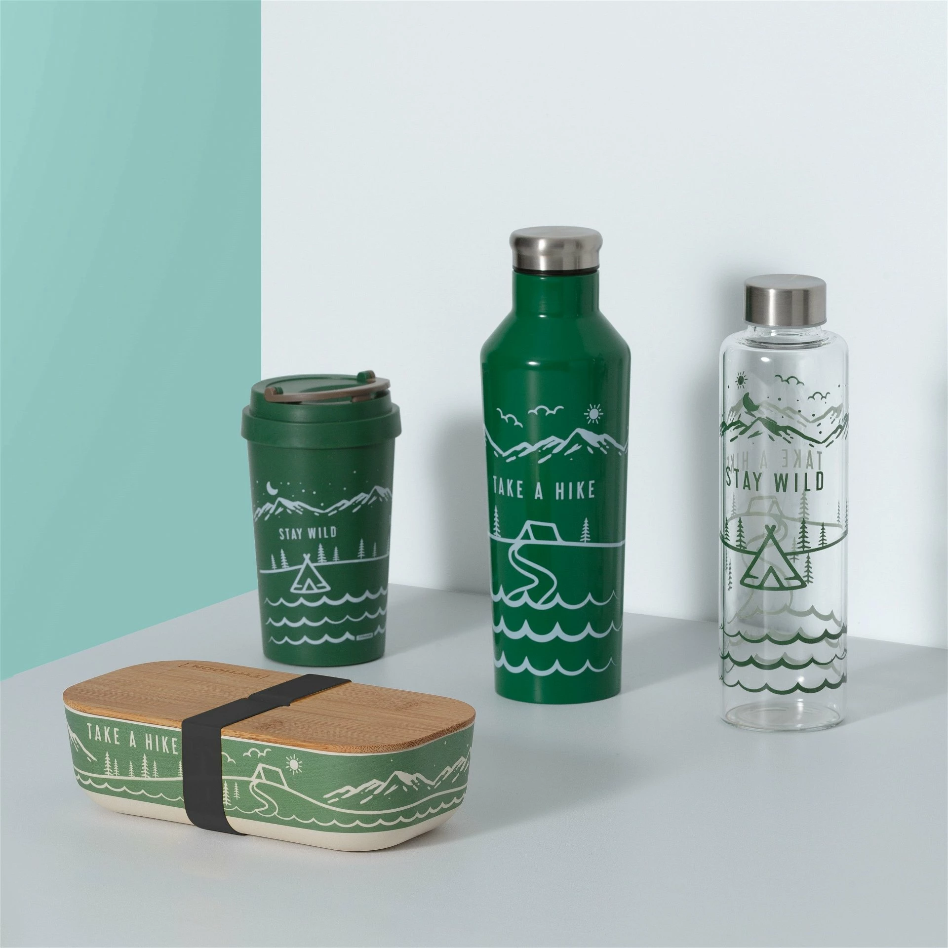 Stay hydrated while enjoying the great outdoors with the Typhoon PURE Stay Wild Glass Bottle! From the PURE Collection featuring stylish products for active, environmentally conscious lifestyles, this bottle is crafted from intensely durable borosilicate glass that’s built for daily use. This 20.3 oz. bottle comes with a stainless steel leak-proof lid and is an eco-friendly and stylish solution to reducing plastic waste. Featuring an eye-catching mountain and landscape design, the PURE Stay Wild Glass Bottle is perfect for taking on a hike, to the gym, or on the go!